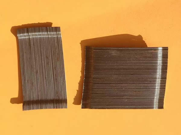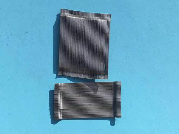 膠粘成排鋼纖維又稱聯排鋼纖維是由高強鋼絲使用水溶性膠水粘接而成。